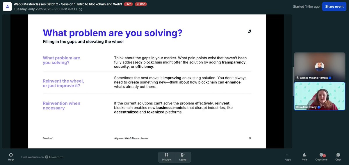 We are Halfway through Web3 Masterclasses!! ๐คฏ This session was super fun, we had special guests from the Algorand Foundation Startup Programs Team, Ram Dheeraj Srigiri & joana.algo ๐ฅ So many key points, I legit can't type them all. I guess you will have to watch the replay ๐ #Algorand