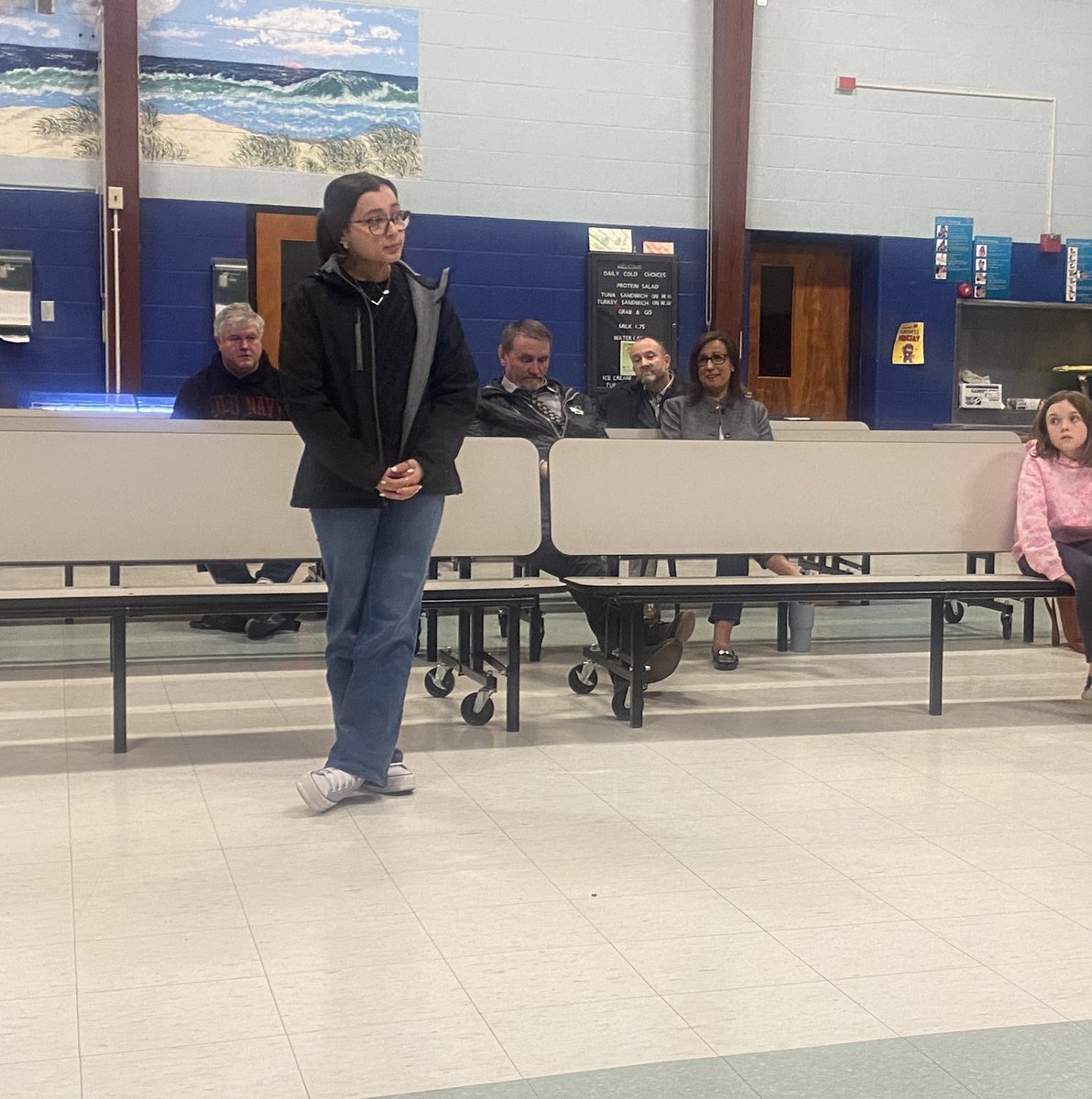 MHS Sophomore, Liliana Minchello updates the School Committee on DECA’s International Career Develolment Conference coming up in April. Robert E. Keuther Jr Sean P. Costello Lara Brait Marshfield DECA