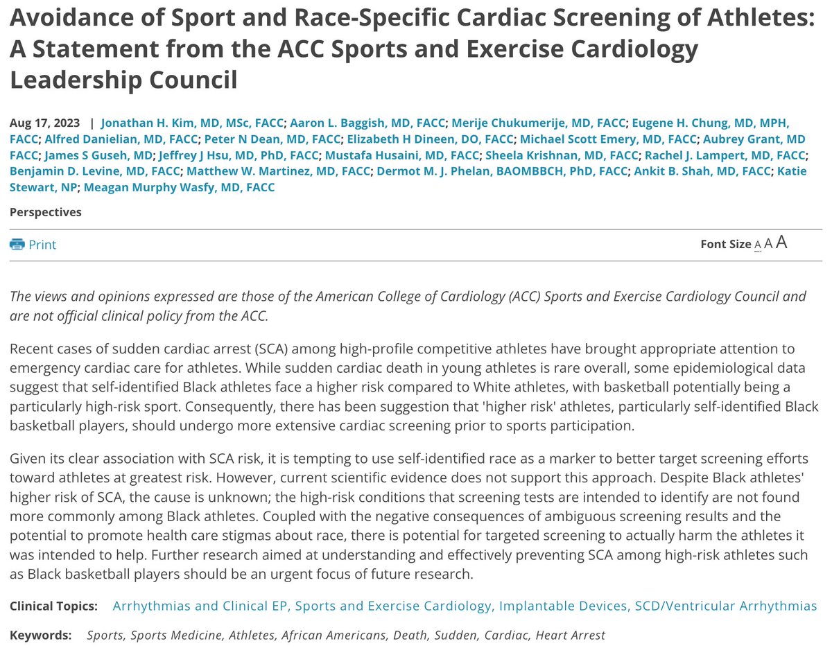 To combat sudden cardiac death in athletes, we must be evidence-driven. Focusing solely on Black basketball players for advanced screening lacks scientific backing. More study, less stigma is the way forward. And an #AEDinEveryGym. See our ACC statement. tinyurl.com/y5debja5