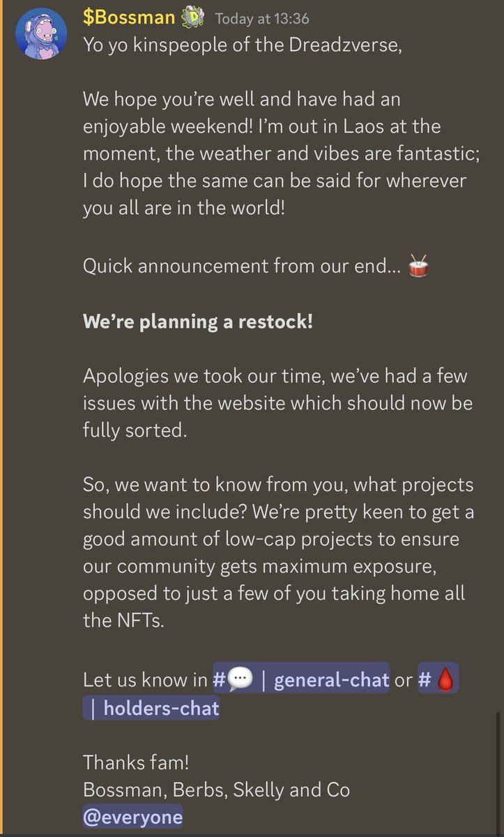 Projects that have been around for a long time I'm holding, increasing my collection and really want these to do well Dreadfulz + Salty Sharks Uprising 🇦🇺 MadBananaUnion 🍌 @Crypto_CaveClub Sympathy For The Devils - SFTD Spooky Boys Country Club