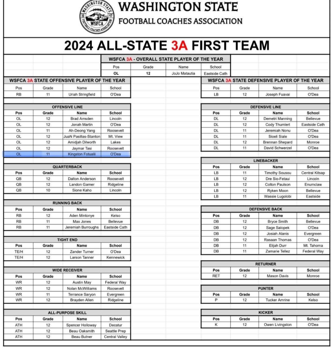 Blessed and Thankful to receive 1st team All State Db honors from WSFCA. Brandon Huffman Tracy Ford Keaton Johnson Tim Hauck Coach Bobby Hauck Coach Kim McCloud Roger Cooper