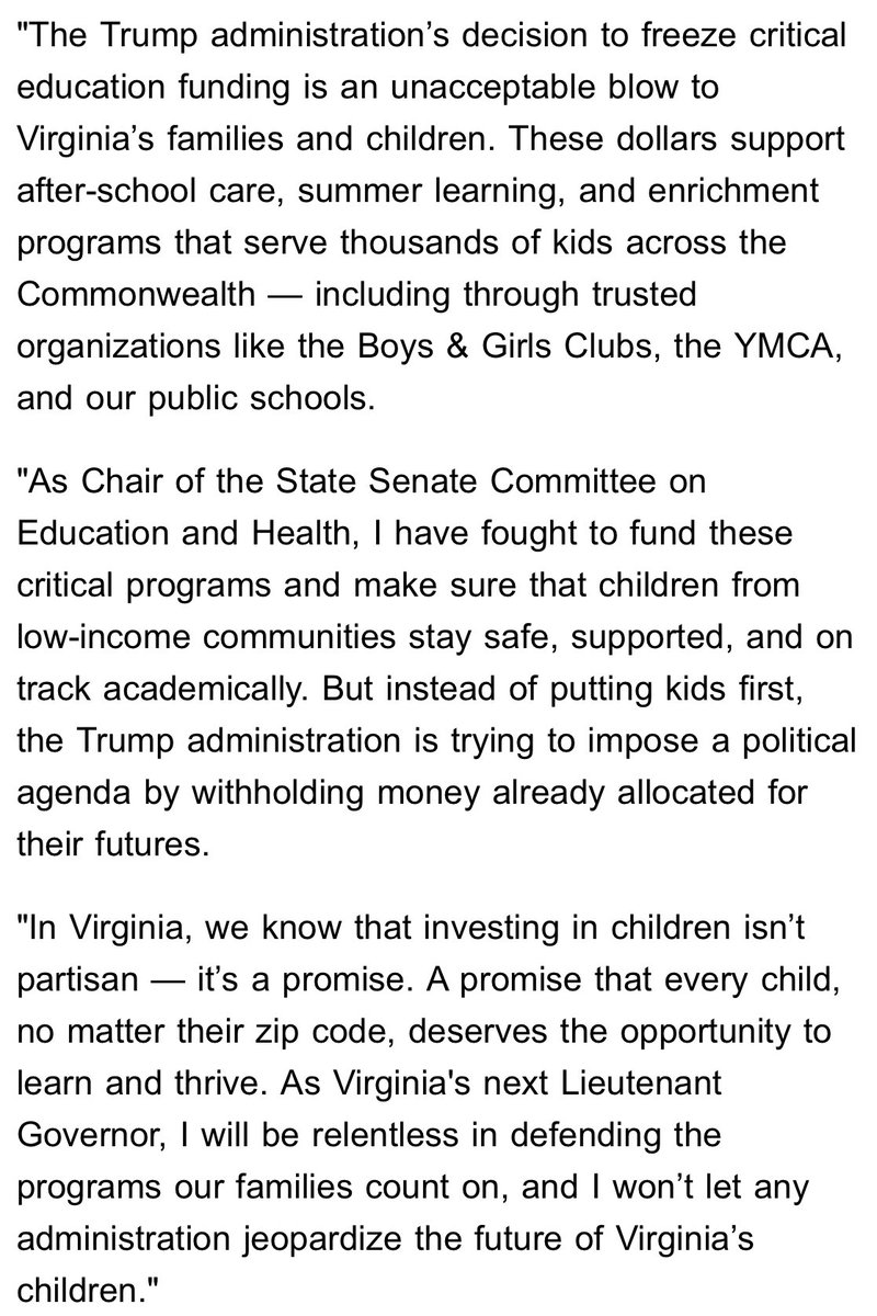 State Senator for Virginia’s 15th Senatorial District. Chair, Senate Education and Health Committee Democratic Candidate for Lieutenant Governor